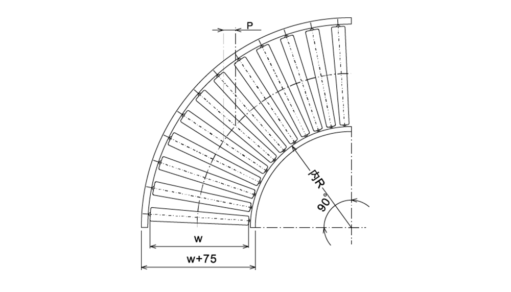 También conocido como transportador de rodillos curvos, el transportador de rodillos cónicos permite ángulos de giro de 30, 45, 60, 90 y 180 grados. Se utiliza principalmente para cambios de dirección en líneas transportadoras, y los grados 30, 45 y 60 se utilizan a menudo para bifurcar y fusionar transportadores. Este transportador es de tipo liviano con una capacidad de carga que generalmente no excede los 200 KG.